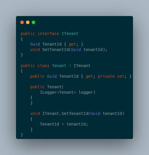 The ITenant is very simple, just a property to hold the value and a setter, very similar to the Ambient Context.